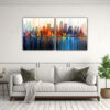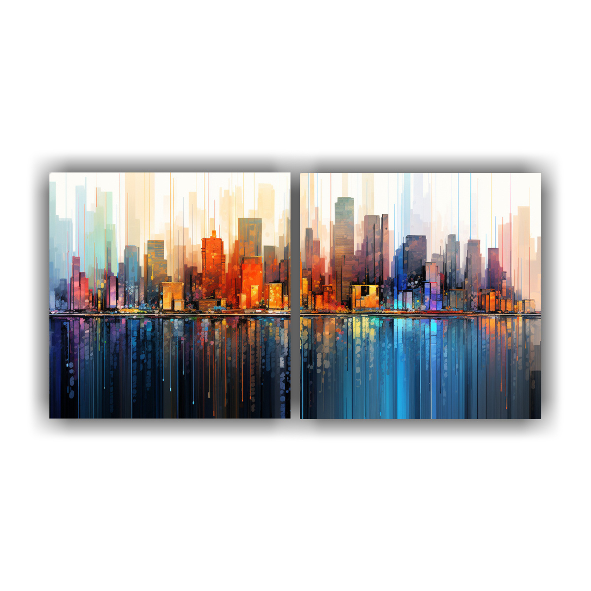 Pinturas Decorativas De Movimiento Armonía Cromática: Dos Cuadros, Glitch Art, Medios Mixtos, Vibrantes Horizontes