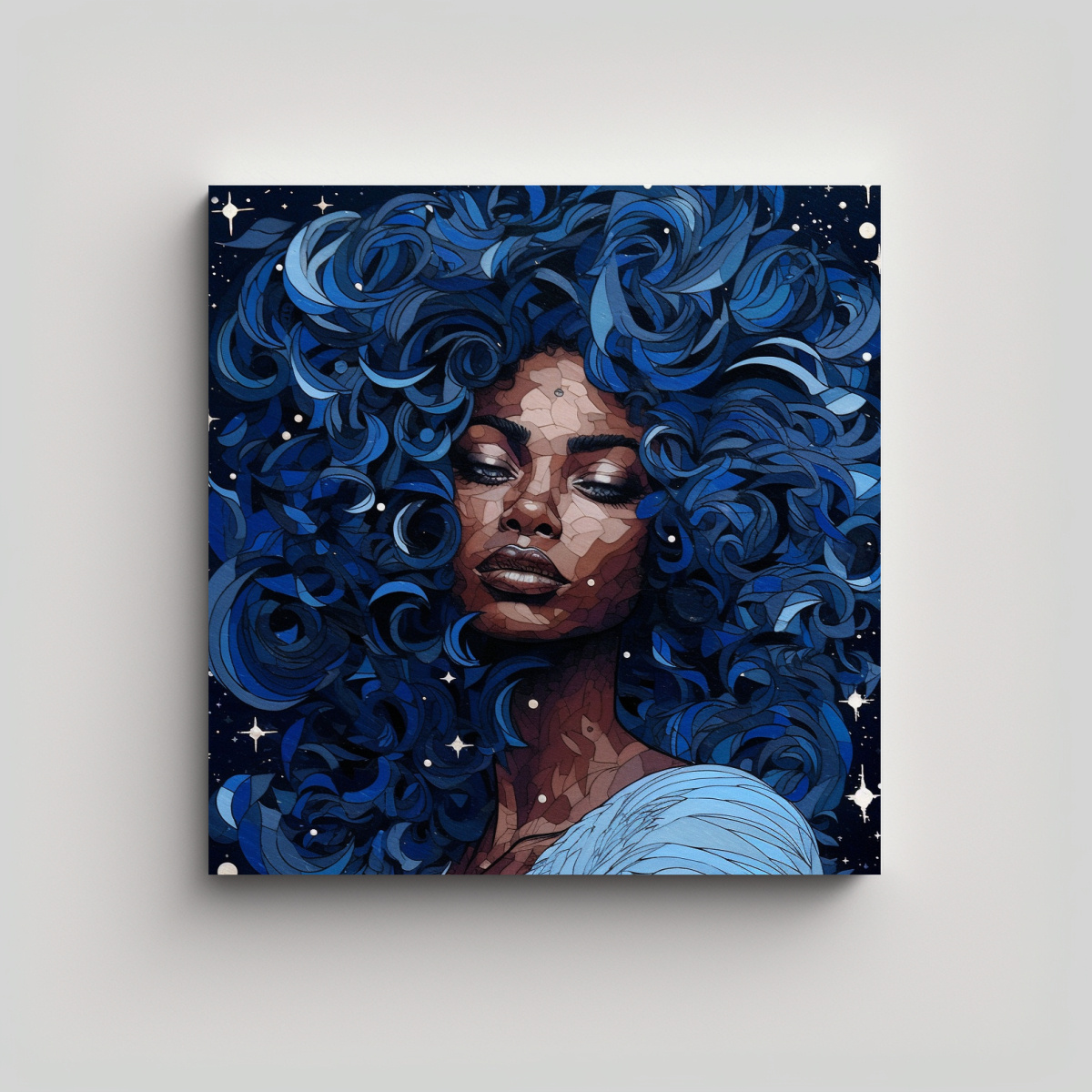 Este cuadro decorativo de mujer negra en papel superpuesto queda espectacular en salas de estar o dormitorios, especialmente en paredes de tonos neutros para resaltar su belleza Combínalo con muebles de colores cálidos para crear un ambiente acogedor y elegante
