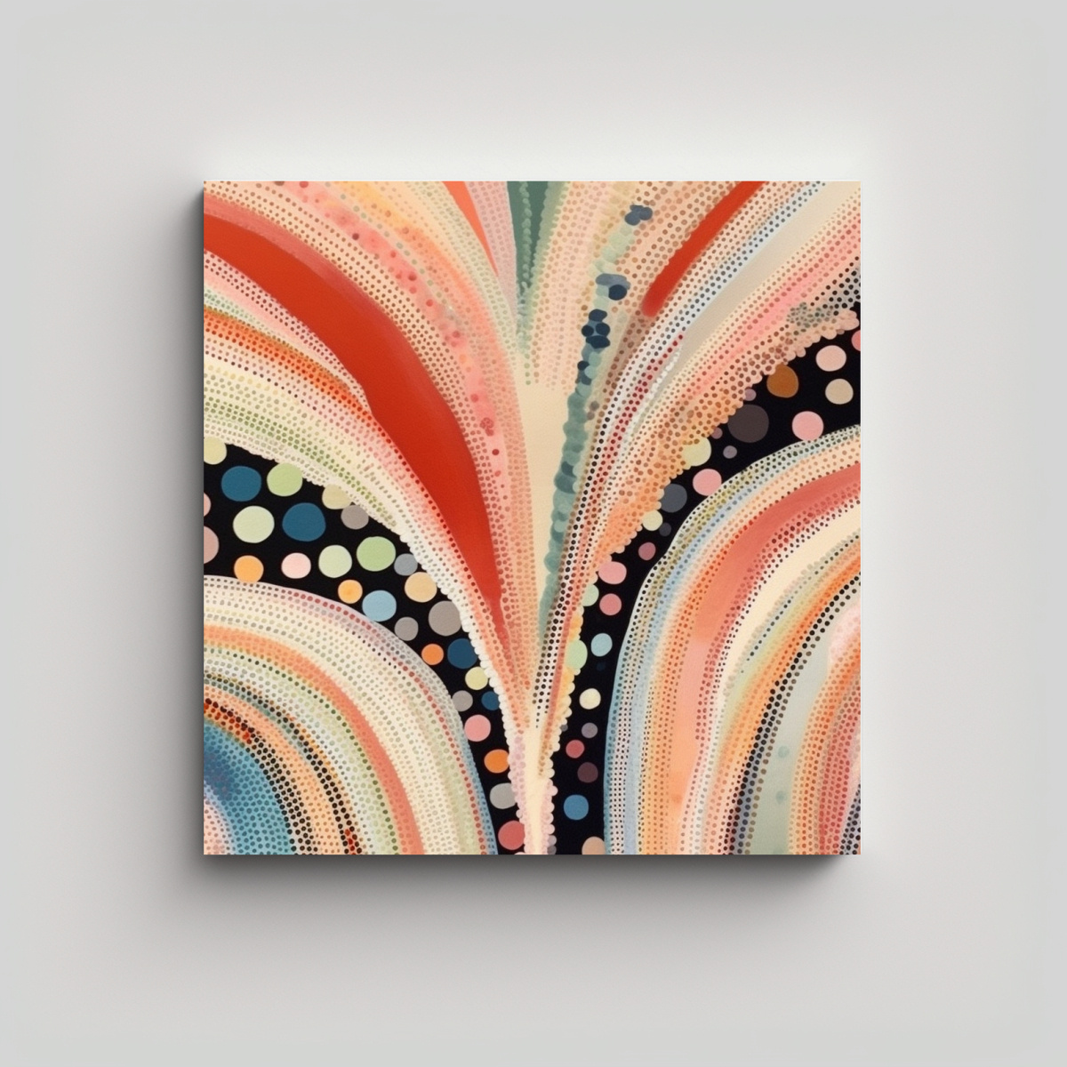 Añade un toque de calidez a tu sala de estar, dormitorio o estudio con este cuadro de líneas abstractas y formas de pétalos y lunares Combínalo con muebles en tonos neutros para resaltar su belleza y crear un ambiente acogedor y elegante