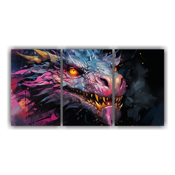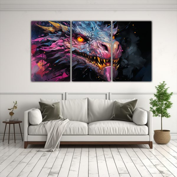 Pinturas Decorativas De Naturaleza Viva Y Dragón En Colores Amarillo Y Rosa