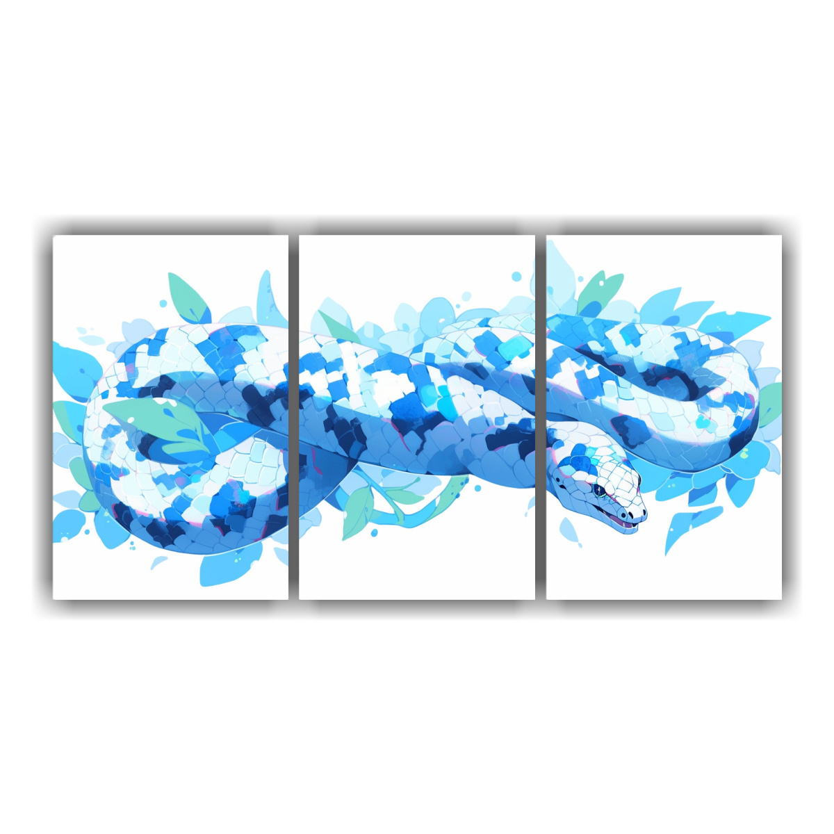 Pinturas Decorativas De Neo Pop Art: Bastidor De Madera Boa Constrictor En Blanco Y Azul