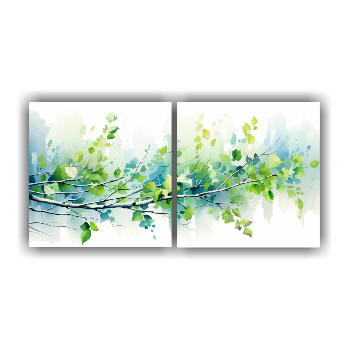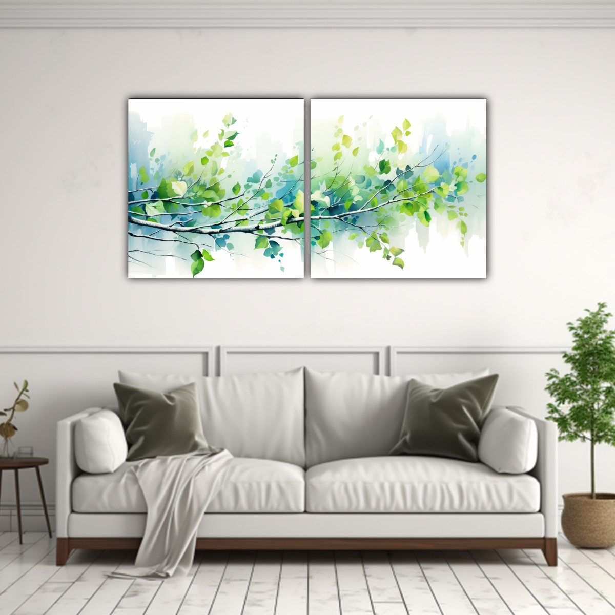 Pinturas Decorativas De Oficina: Composiciones Inspiradas En Abeto En Verde Y Azul, Ambiente Neonoir.
