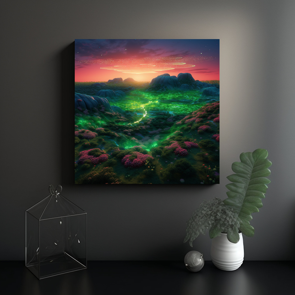 Pinturas Decorativas De Paisajes Remotos En Bastidor Con Flora Digital Verde