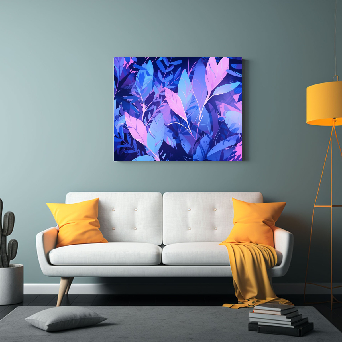 Este cuadro se vería espectacular en una sala de estar moderna, junto a muebles en tonos neutros como blancos y grises Añade cojines y accesorios en color lila y gris para lograr una decoración armoniosa y sofisticada