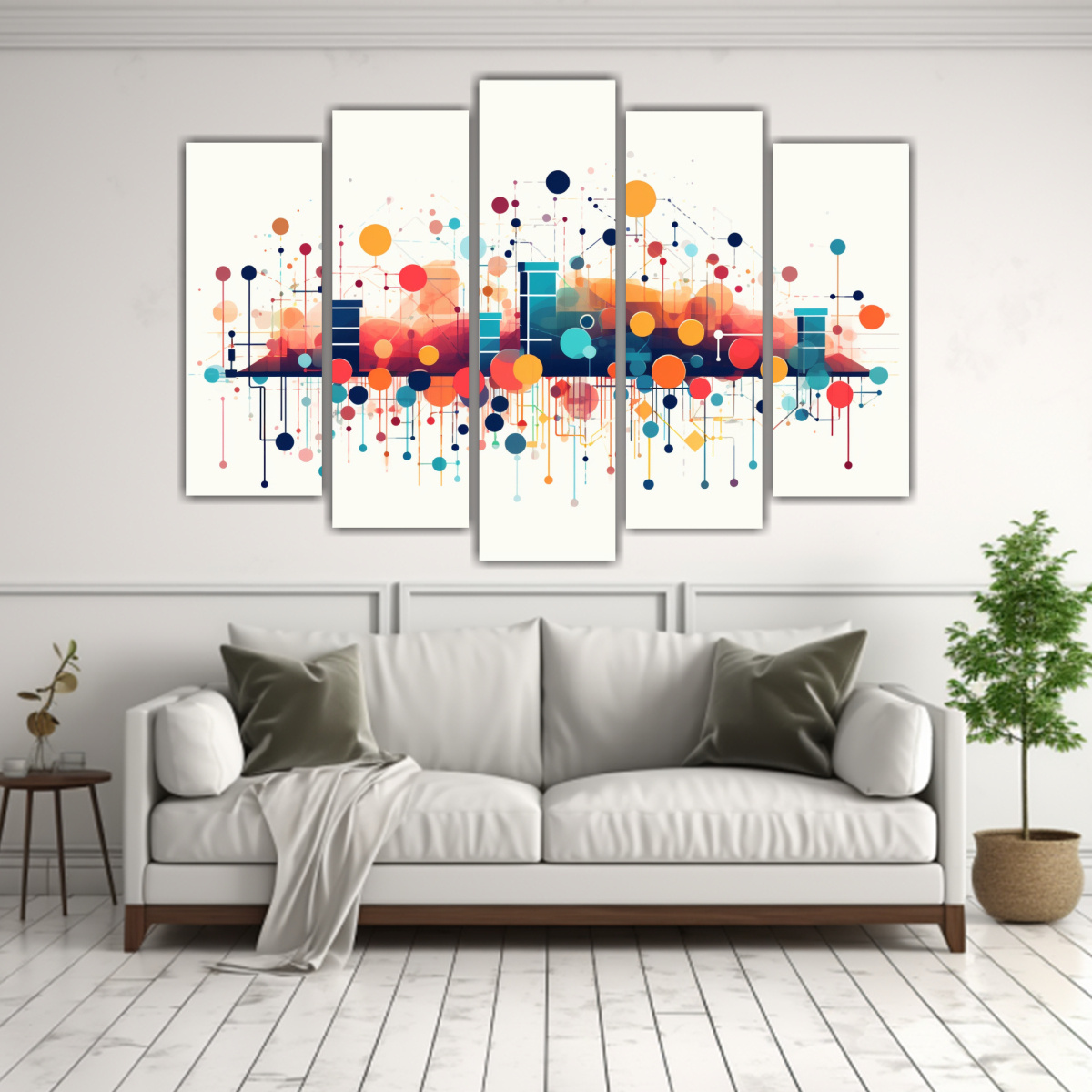 Decora tus paredes con los Cinco Artes de Pared Expresion multicolor de DecoCuadros Colores vibrantes como Coral, Azul Marino grisaceo, Blanco y más Diseños exclusivos y entrega express a regiones