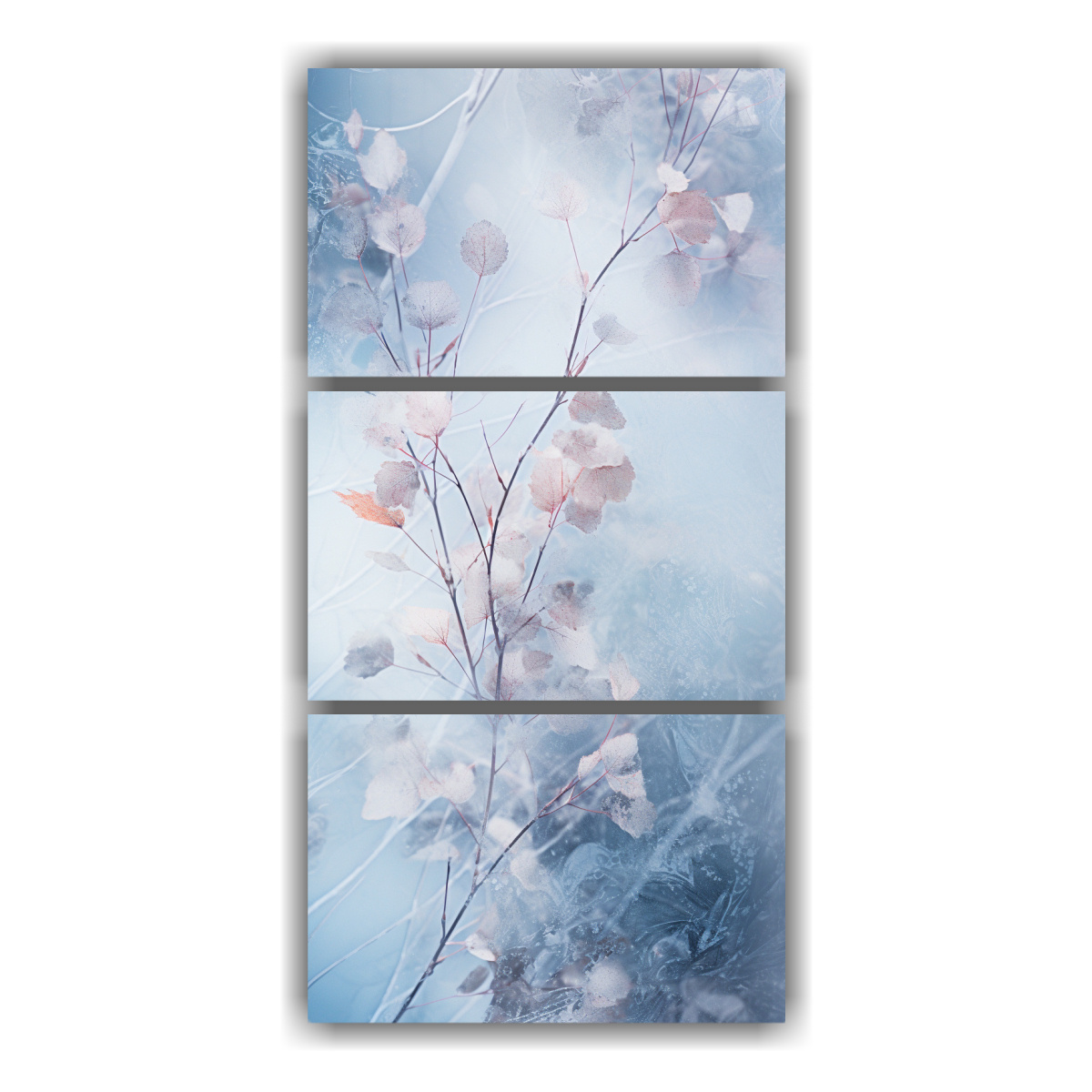 DecoCuadros te ofrece un set de 3 artes modernos con patrones abstractos de escarcha invernal en tonos plateado, dorado, gris, beige y lila Nuestros cuadros están impresos en tela de alta calidad y cuentan con bastidores de madera Tenemos diseños exclusivos, la mejor calidad del mercado y precios económicos Realizamos entregas rápidas y gratuitas en Santiago, y envíos express a regiones