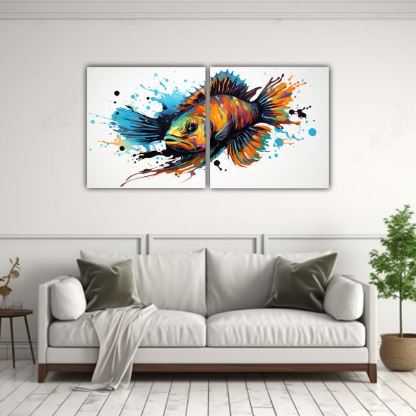 Este cuadro de peces de agua salada en colores ricos y chocolate se vería espectacular en la pared principal de tu sala de estar, creando un punto focal único Combínalo con muebles en tonos neutros y accesorios dorados para un ambiente sofisticado y moderno