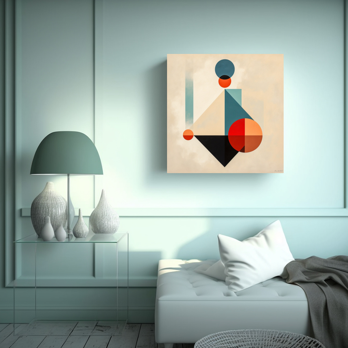 DecoCuadros ofrece pinturas decorativas de representación de f con figuras geométricas en colores beige, azul marino grisaceo, carmesí, coral, turquesa, gris y lila Calidad y precios económicos Entrega rápida y gratis en Santiago Envíos express a regiones