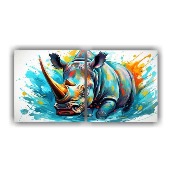 DecoCuadros: Imprime tu decoración con estilo neo pop con este cuadro de rinocerontes en tonos impactantes y turquesa Envíos gratis en Santiago y express a regiones Calidad y exclusividad al mejor precio