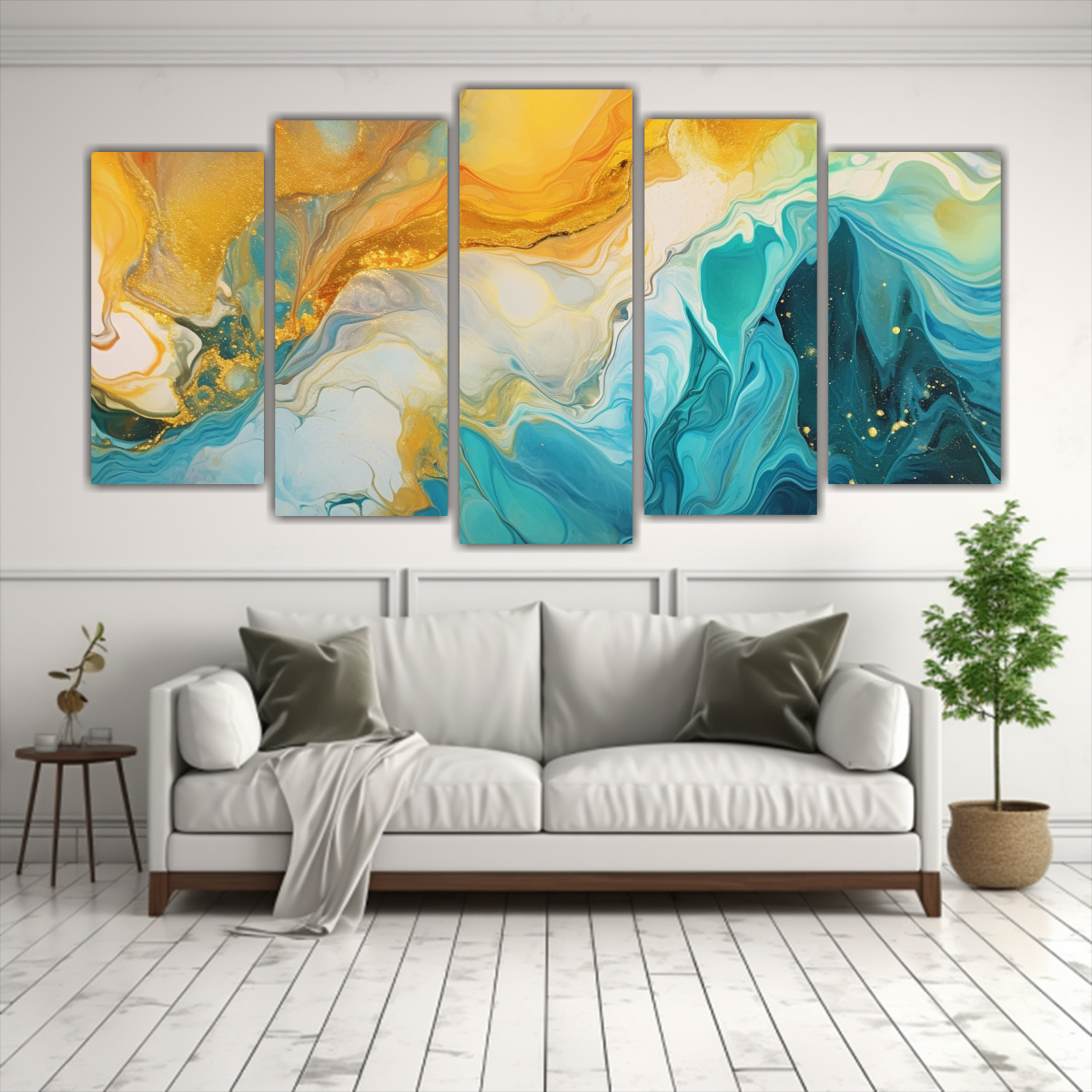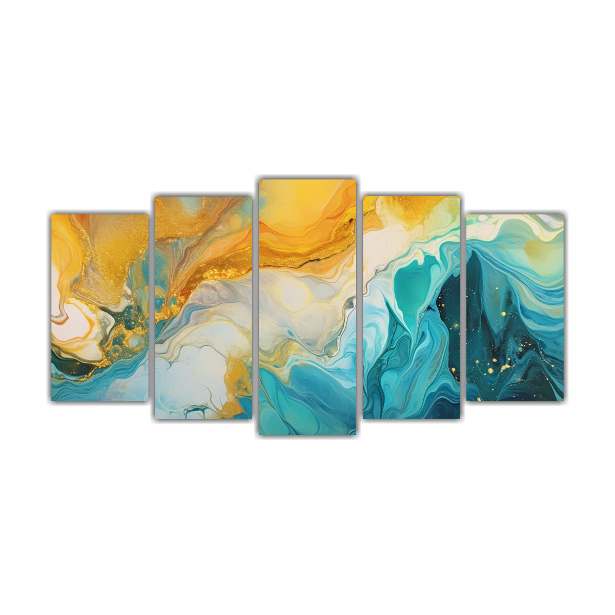 Este set de 5 cuadros concepto espacio es perfecto para decorar tu sala de estar Puedes colocarlos en una pared vacía para crear un punto focal o distribuirlos de manera asimétrica para darle movimiento a la composición Combínalos con muebles en tonos neutros como gris y chocolate, y agrega cojines y accesorios en tonos turquesa para realzar el diseño ¡Crea un ambiente único y moderno con nuestros cuadros decorativos!