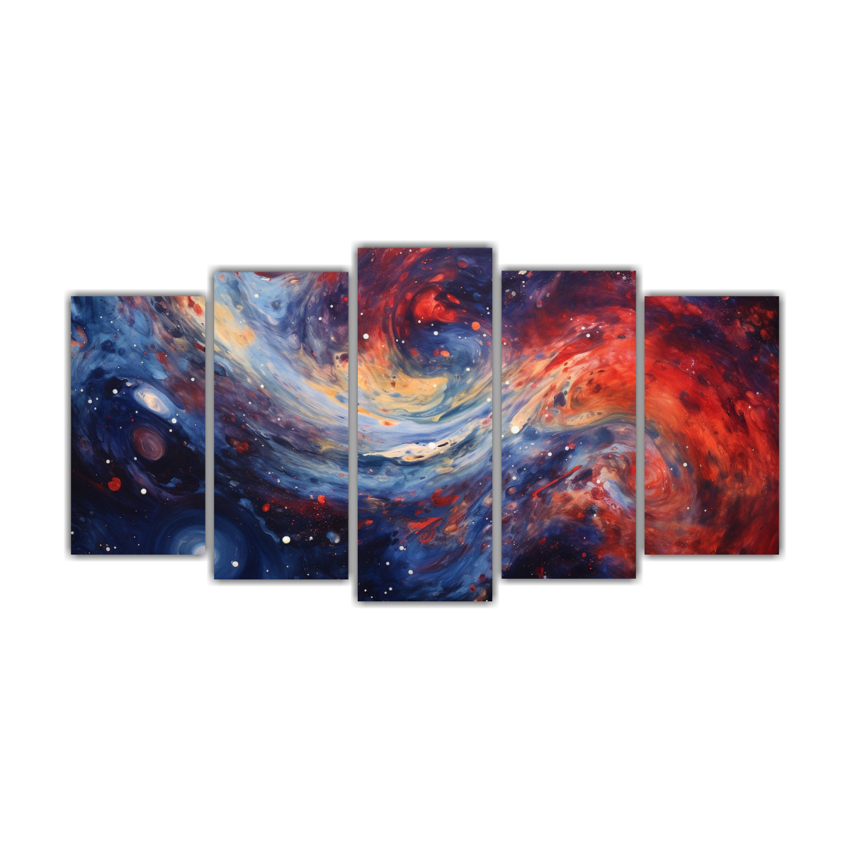 Recomendamos colocar este set de 5 lienzos de tela en una sala de estar con tonos neutros, como blancos y grises, para que los colores intensos de las galaxias en espiral resalten y se conviertan en el centro de atención También puedes combinarlos con muebles de estilo moderno para crear un contraste interesante ¡Atrévete a darle a tu espacio un toque artístico y original!
