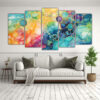 Este cuadro de tela sublimada con efecto visual abstracto reinterpretación de texturas naturales en cinco lienzos sería ideal para decorar una sala de estar moderna Puedes colocarlo sobre un sofá de color neutro para realzar su belleza y combinarlo con cojines en tonos plateados y verdes azulados ¡Aportará un toque de estilo único a tu espacio!