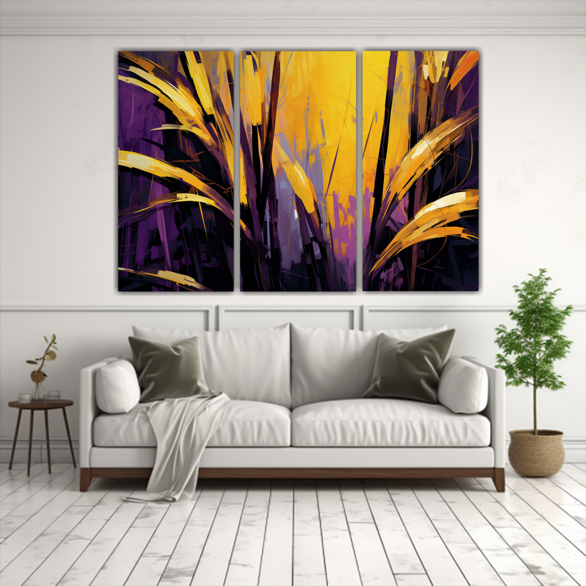 Este cuadro es ideal para decorar tu sala de estar o dormitorio Colócalo sobre un mueble en tonos neutros para resaltar su belleza y crear un ambiente sofisticado Combínalo con cojines en amarillo y morado para un look armonioso y lleno de estilo