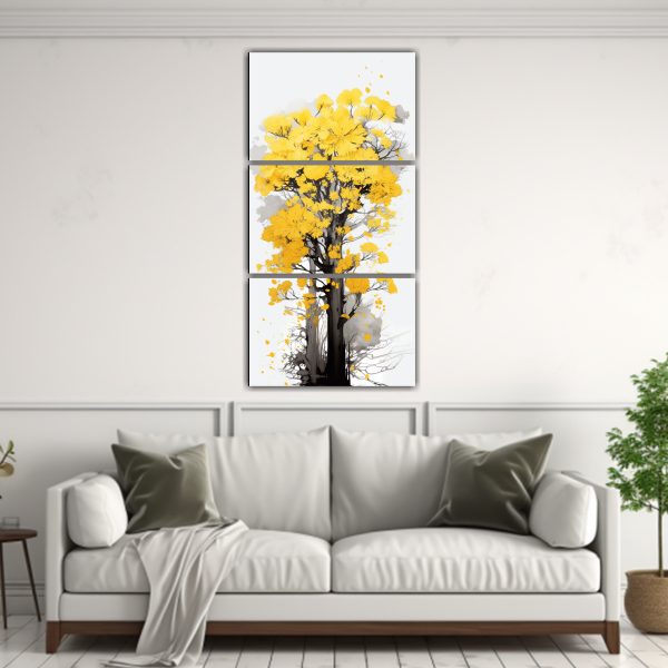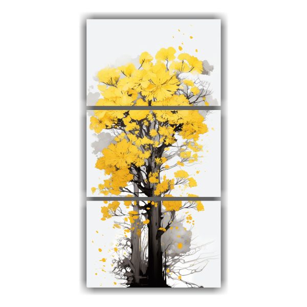 Pinturas Decorativas De Tres Artes Tonos Majestuosos: Roble En Amarillo Y Blanco Con Atmósfera Neonoir