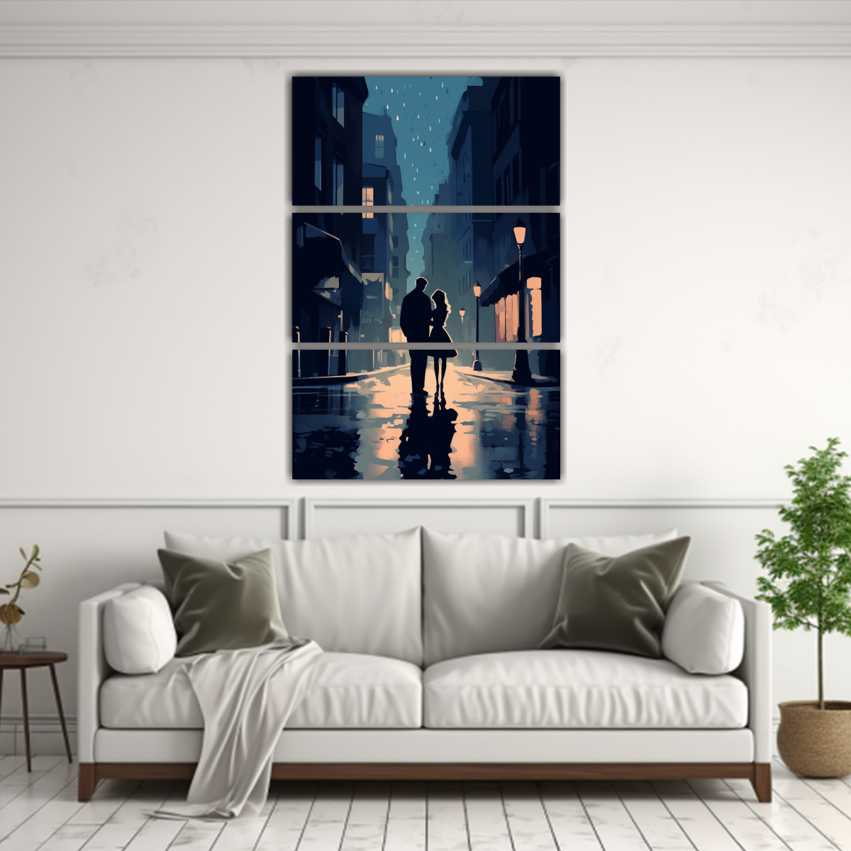 Pinturas Decorativas De Tres Cuadros Inspiración Cultural Una Pareja Tomada De La Mano En Una Ciudad De Noche