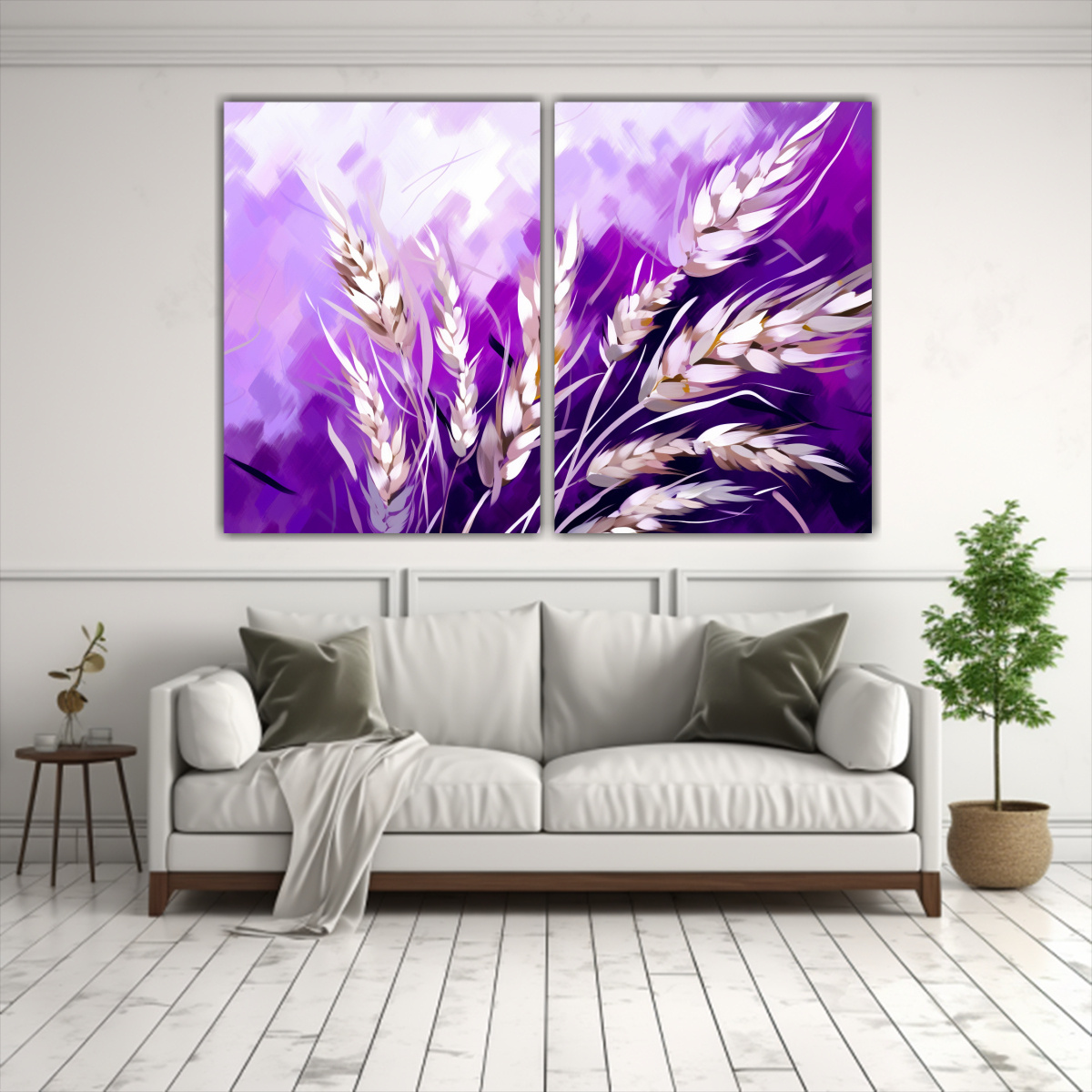 Dos Lienzos Cuadro Intenso A Wheat Grains in Purple AND White Colors Neo-noir atmosphere Azul Marino grisaceo, Violeta, Beige, Lila, Gris, Chocolate Decora tu hogar con estilo y elegancia
