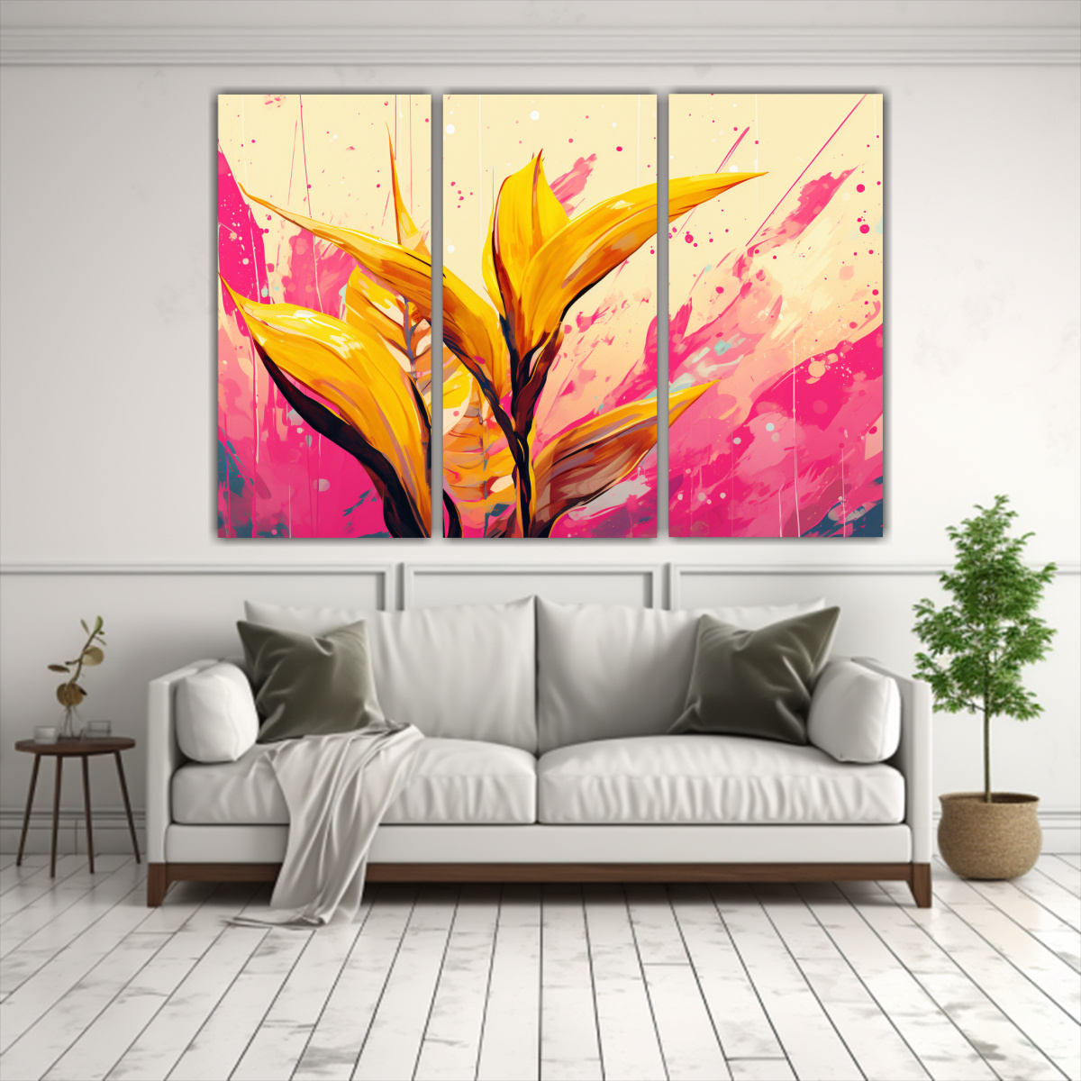 Para realzar la belleza de este tríptico, te recomendamos colocarlo en la sala de estar sobre un mueble en tonos neutros o en una pared libre de distracciones Su combinación de colores suaves y llamativos añadirá un toque de frescura y elegancia a cualquier ambiente