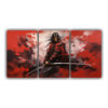 El tríptico de pinturas decorativas del honor y coraje de un samurái es una composición equilibrada en tonos carmesí, negro, plateado, gris, coral, azul marino grisáceo, lila y dorado Impreso en tela de alta calidad con bastidores de madera