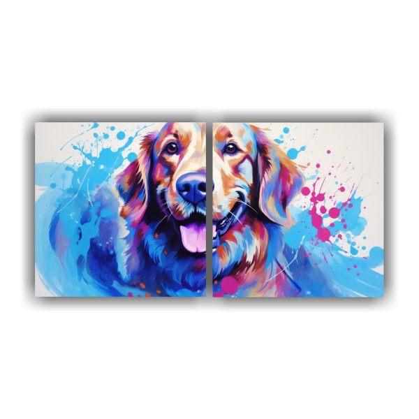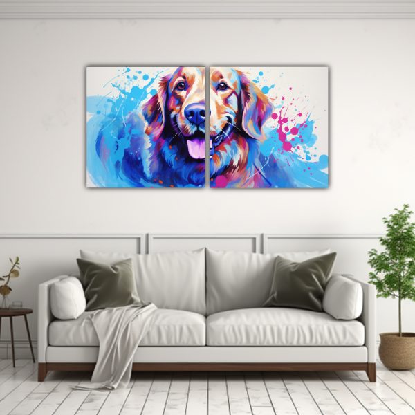 Pinturas Decorativas De Un Retriever En Colores Vibrantes Y Azules En Arte Pop Neo.