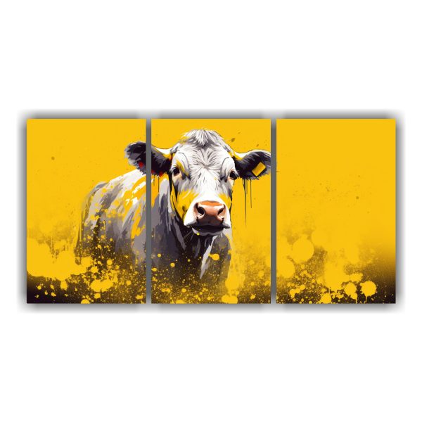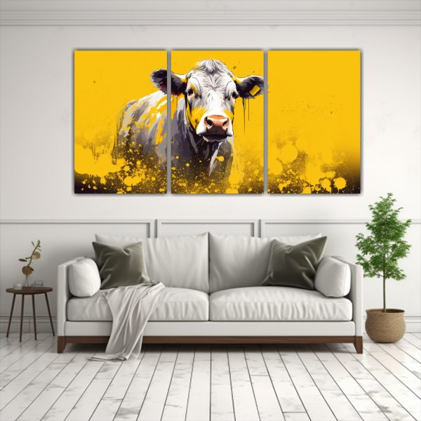 Pinturas Decorativas De Vaca Hereford En Colores Amarillos.