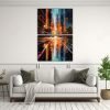 Coloca este cuadro en tu sala de estar para crear un ambiente moderno y sofisticado Sus vibrantes reflejos urbanos darán vida a tus paredes y combinarán perfectamente con muebles de tonos neutros o colores complementarios como el gris o el blanco ¡Atrévete a destacar con esta obra de arte única!
