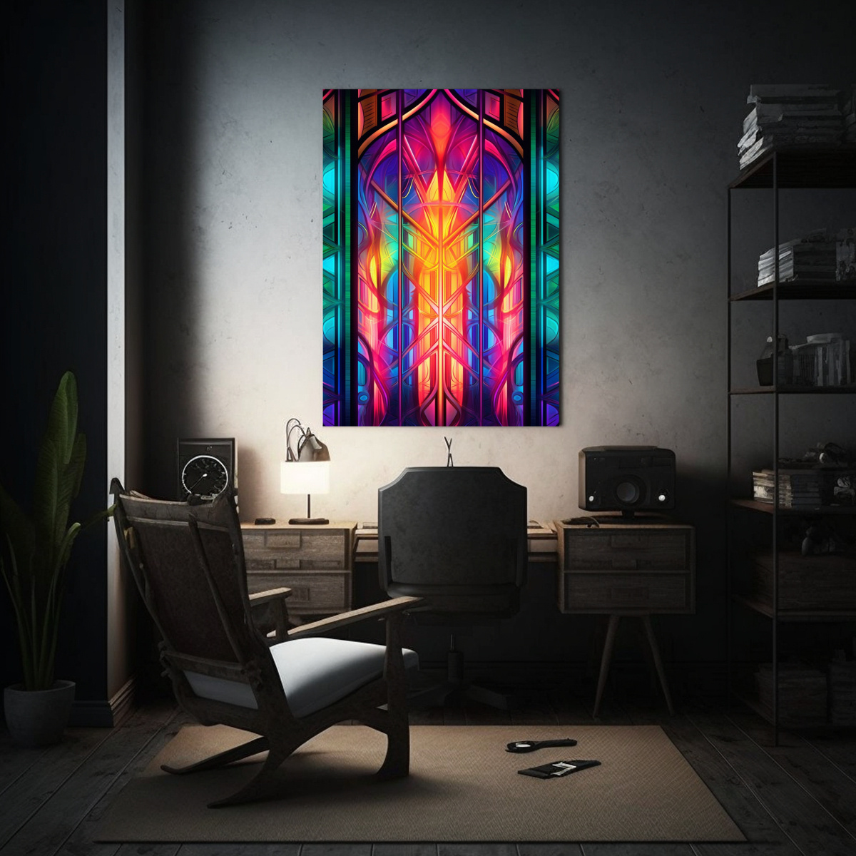 Este cuadro de arte callejero bioluminiscente y perlado en tonos coral, menta y negro sería perfecto para decorar una sala de estar moderna Colócalo sobre un sofá de color neutro para que sea el punto focal de la habitación Combínalo con cojines en tonos vibrantes y una alfombra a juego para completar el look futurista ¡Impresionarás a tus invitados con esta pieza de arte única!