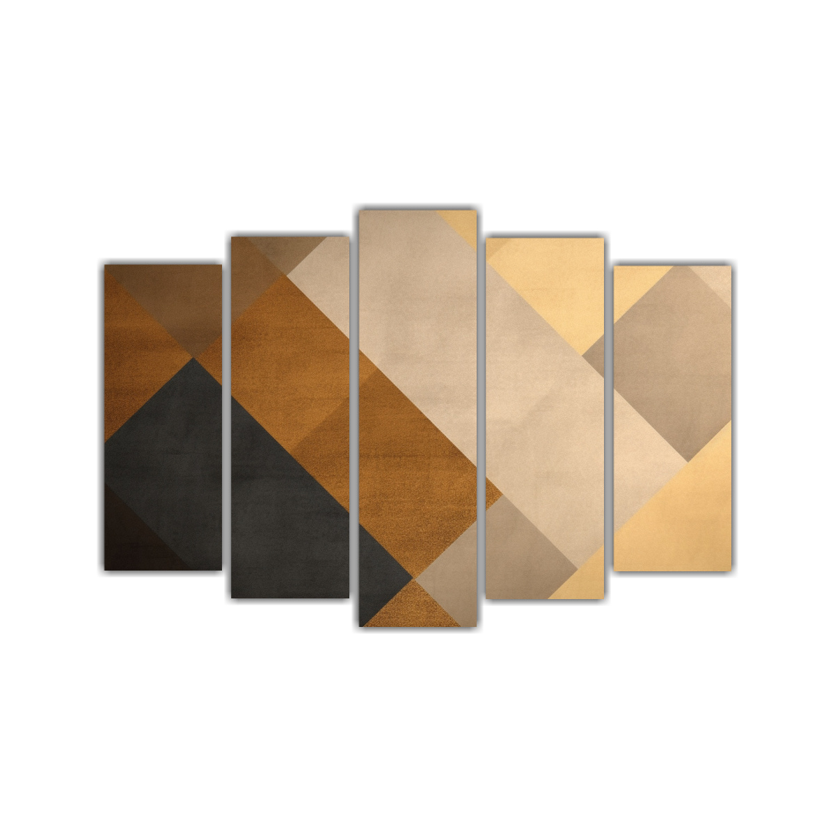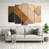 Pinturas Decorativas: Diseño En Oro Y Beige Sobre Fondo Geométrico.