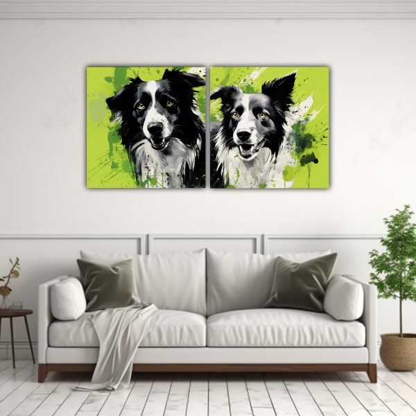 Pinturas Decorativas Dormitorio Con Pastor Alemán Y Collies En Verde Y Negro