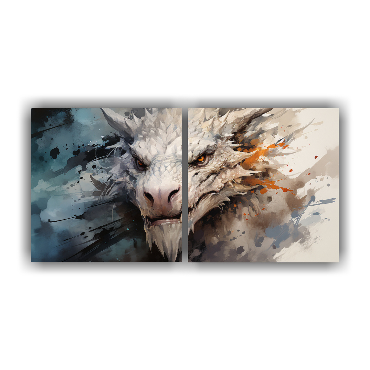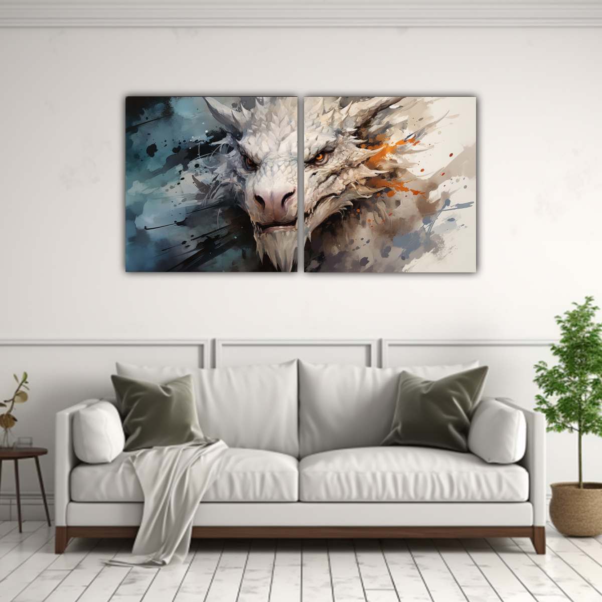 Pinturas Decorativas Dormitorio: Dragón En Blanco, Atmósfera Neonoir, Neo Pop.