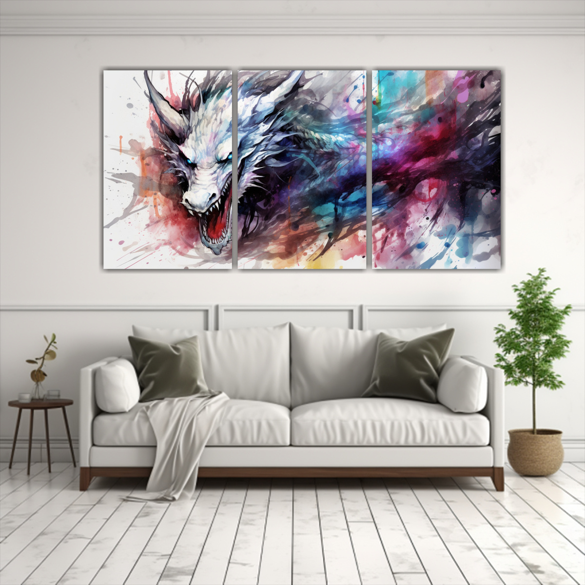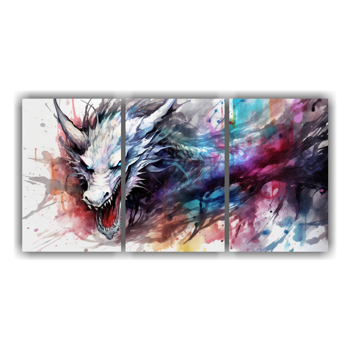 Renueva tu espacio con este cuadro de dragón en acuarelas y neonoir blanco, impreso en tela de alta calidad con bastidor de madera En DecoCuadros garantizamos la mejor calidad del mercado y envíos express a regiones Aprovecha esta oportunidad para añadir un toque de magia y misticismo a tu hogar