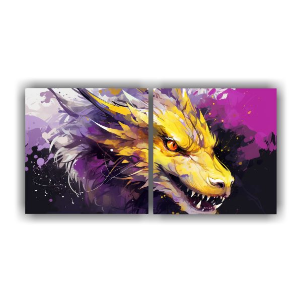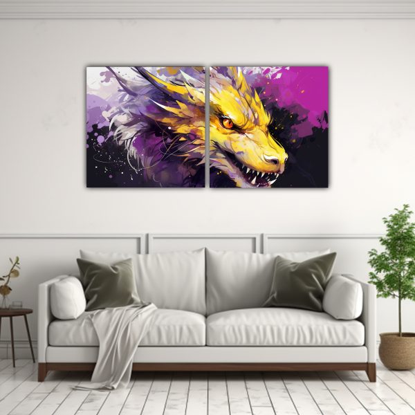 Añade un toque de fantasía a tu espacio con este cuadro de dragón en tonos amarillo y púrpura Ideal para crear una atmósfera neo-noir única Adquiere calidad y originalidad al mejor precio