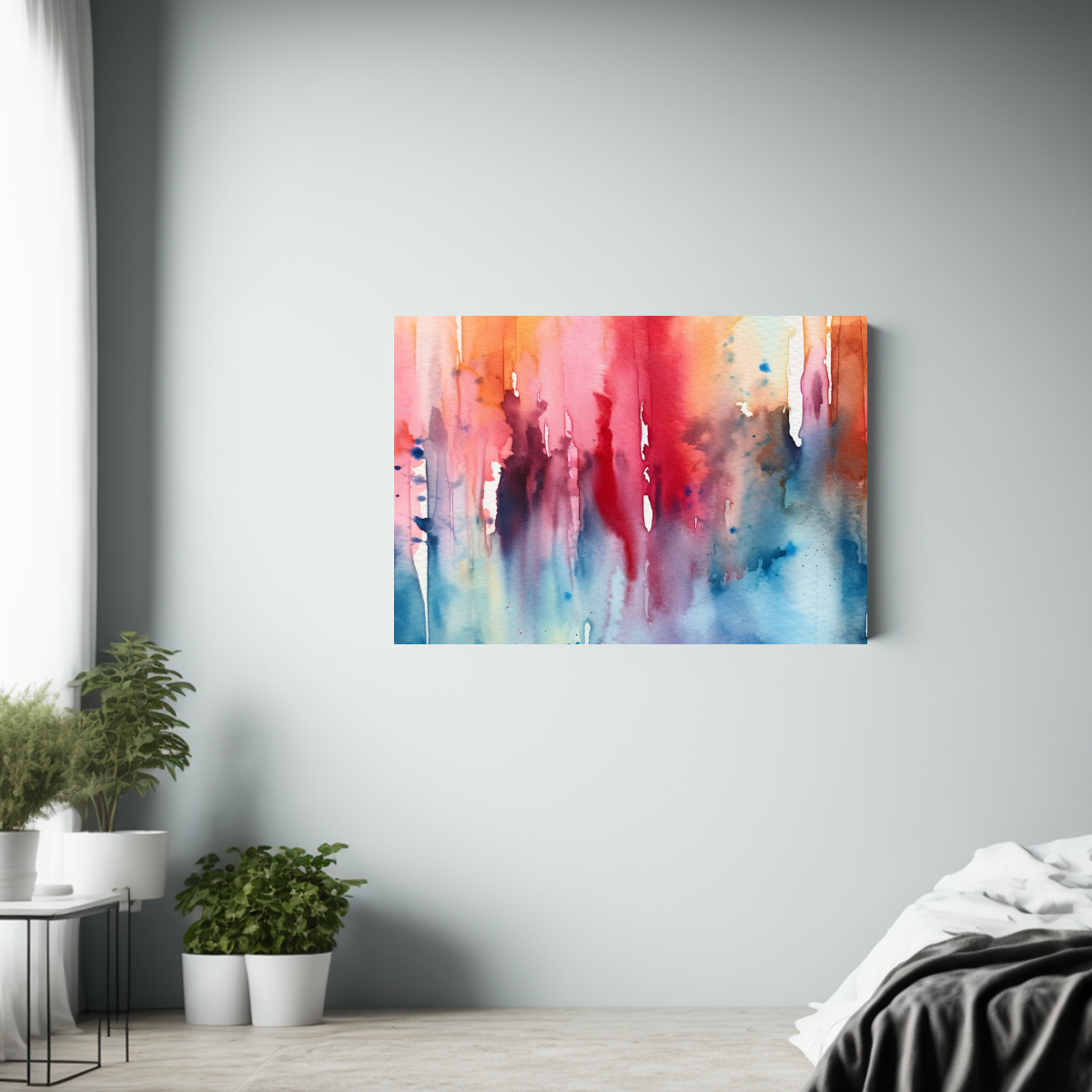Este cuadro elegante con pinceladas acuarela de Butterfield sería perfecto para decorar tu sala de estar sobre un mueble de color blanco, creando un contraste elegante y moderno Combínalo con cojines en tonos coral y turquesa para un look armonioso