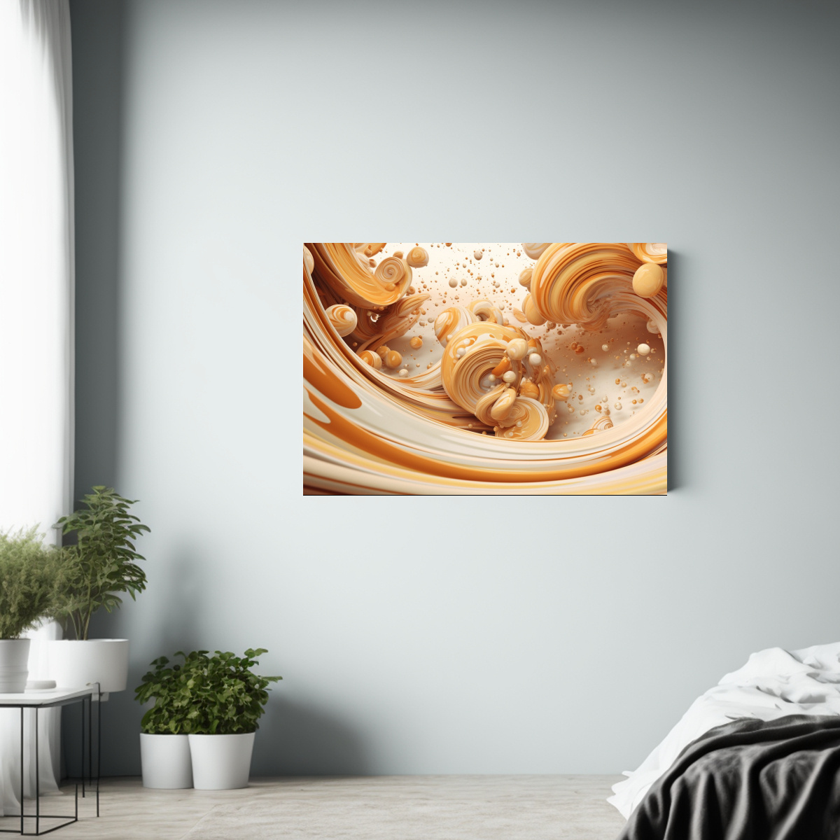 Este cuadro elegante en tonos caramelo con diseño EchoTwirl quedará perfecto en tu sala de estar sobre un sofá de color crema o beige, creando un contraste sofisticado Combínalo con cojines en tonos cálidos y una alfombra en tono neutro para una decoración elegante y moderna
