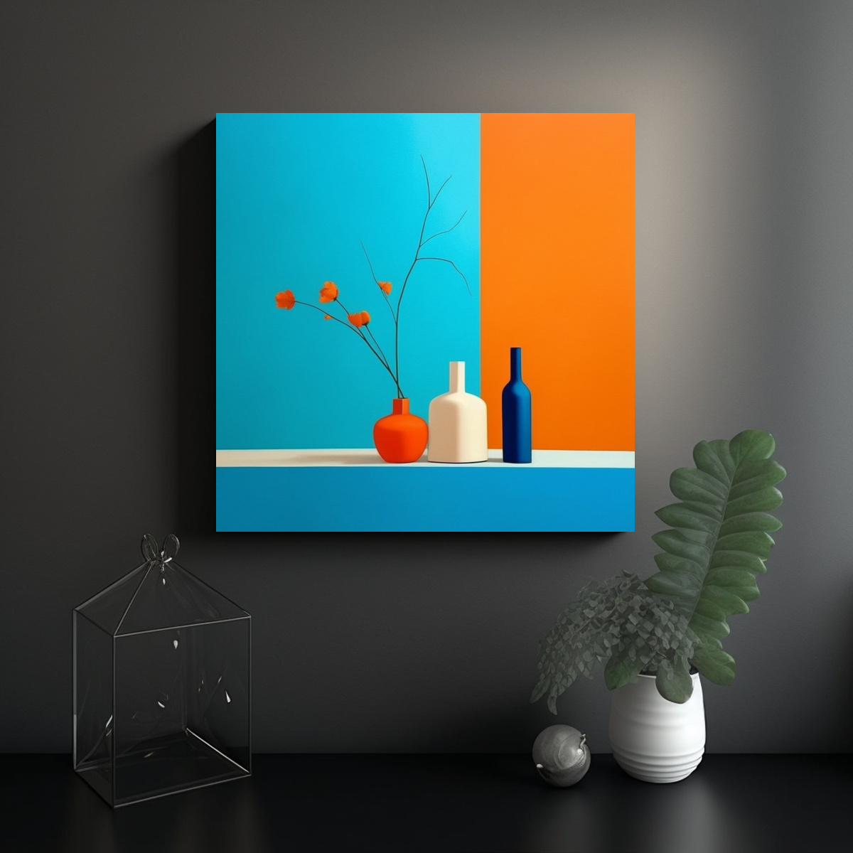 Pinturas Decorativas En Azul Cobalto Y Naranja, Simplicidad Elegante