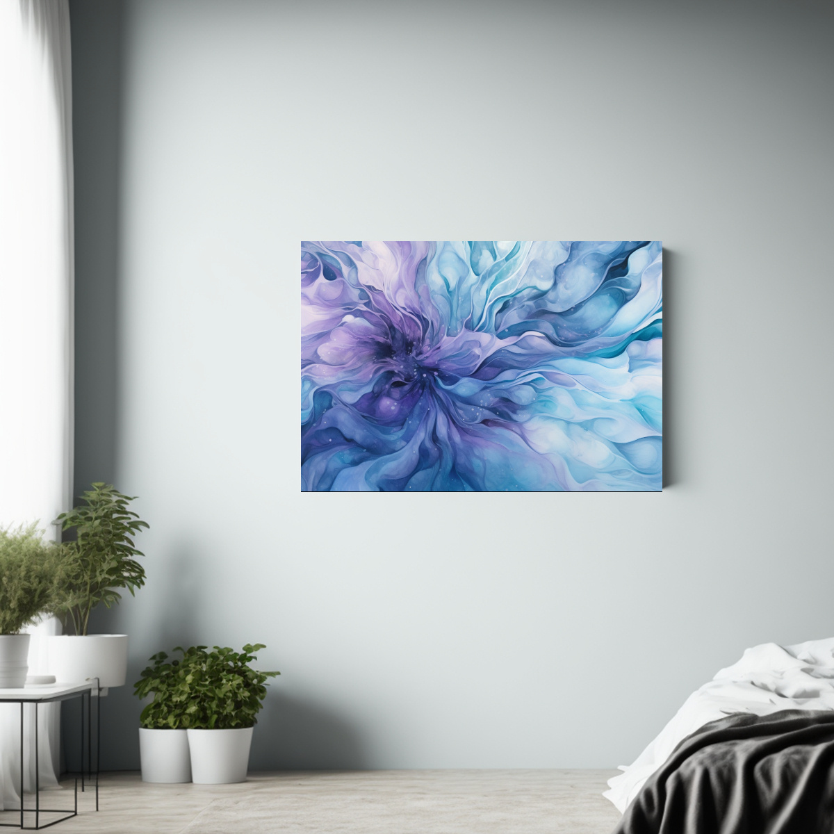 Este cuadro decorativo con tonos azules y morados es perfecto para destacar en un ambiente minimalista o contemporáneo Colócalo en una pared blanca para crear un impacto visual elegante y sofisticado Combínalo con muebles en tonos neutros para un contraste chic y moderno