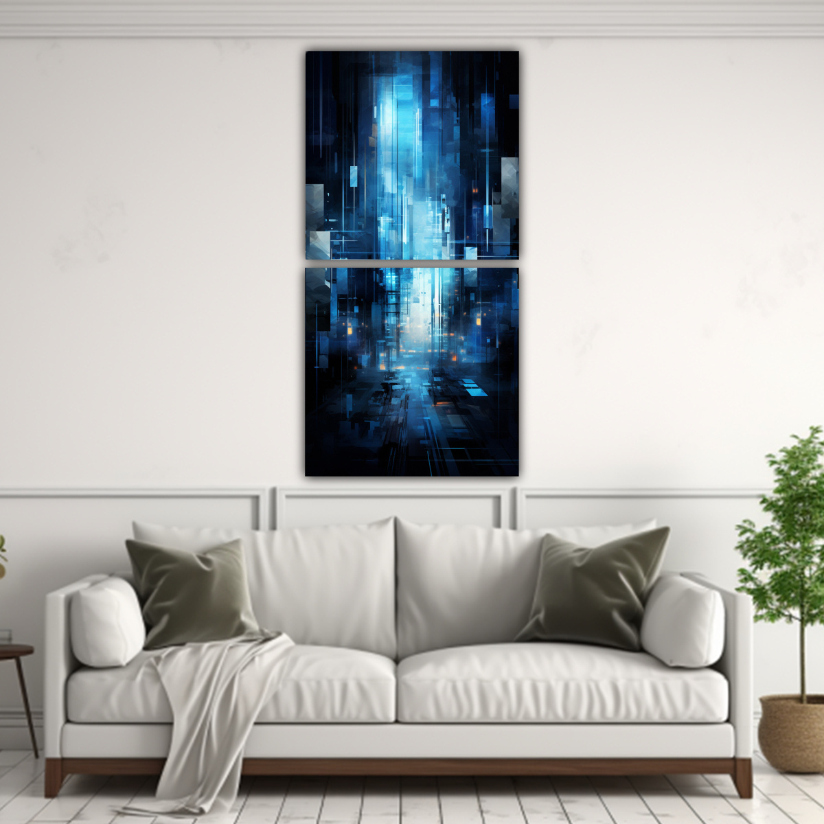 Este cuadro es perfecto para decorar tu sala de estar o dormitorio Combínalo con muebles de colores neutros, como grises o blancos, para resaltar su impactante diseño en azul y gris Además, puedes añadir cojines o cortinas en tonos plateados o turquesas para crear una armonía en la decoración ¡Atrévete a darle un toque moderno y sofisticado a tu hogar con este cuadro de DecoCuadros!