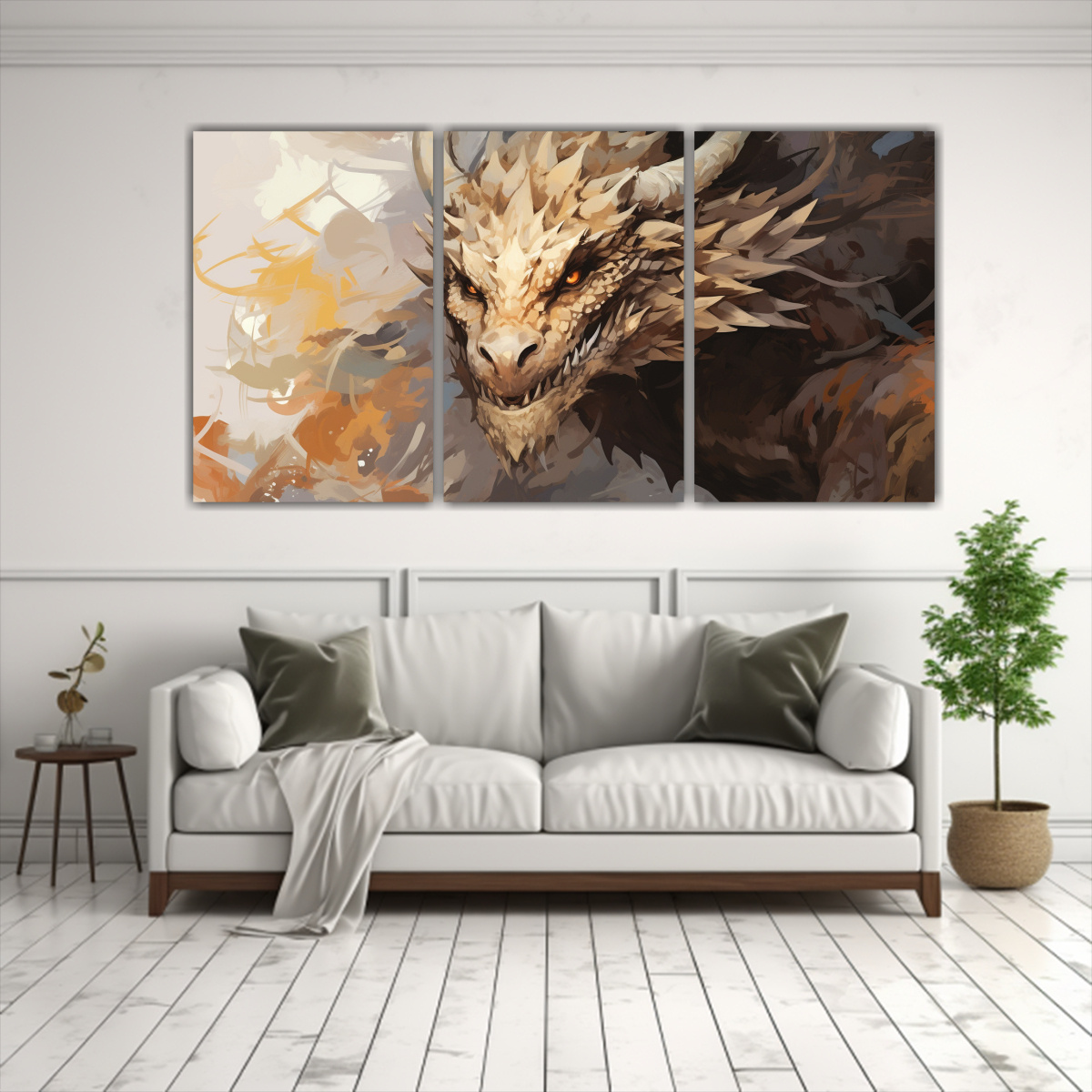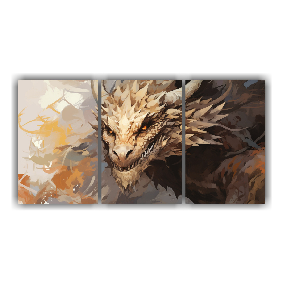 Pinturas Decorativas En Bastidor Con Temática Dragon En Tonos Pastel Y Marrón