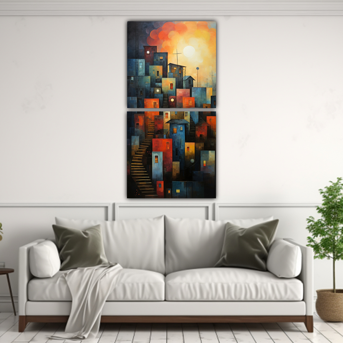 Este set de 2 telas en bastidor de abstracción perspectiva en acrílico es perfecto para darle un toque moderno a tu sala de estar Colócalo sobre un sofá de tonos neutros para resaltar sus colores intensos y lograr una combinación armoniosa ¡Impresiona a tus invitados con este diseño exclusivo de DecoCuadros!