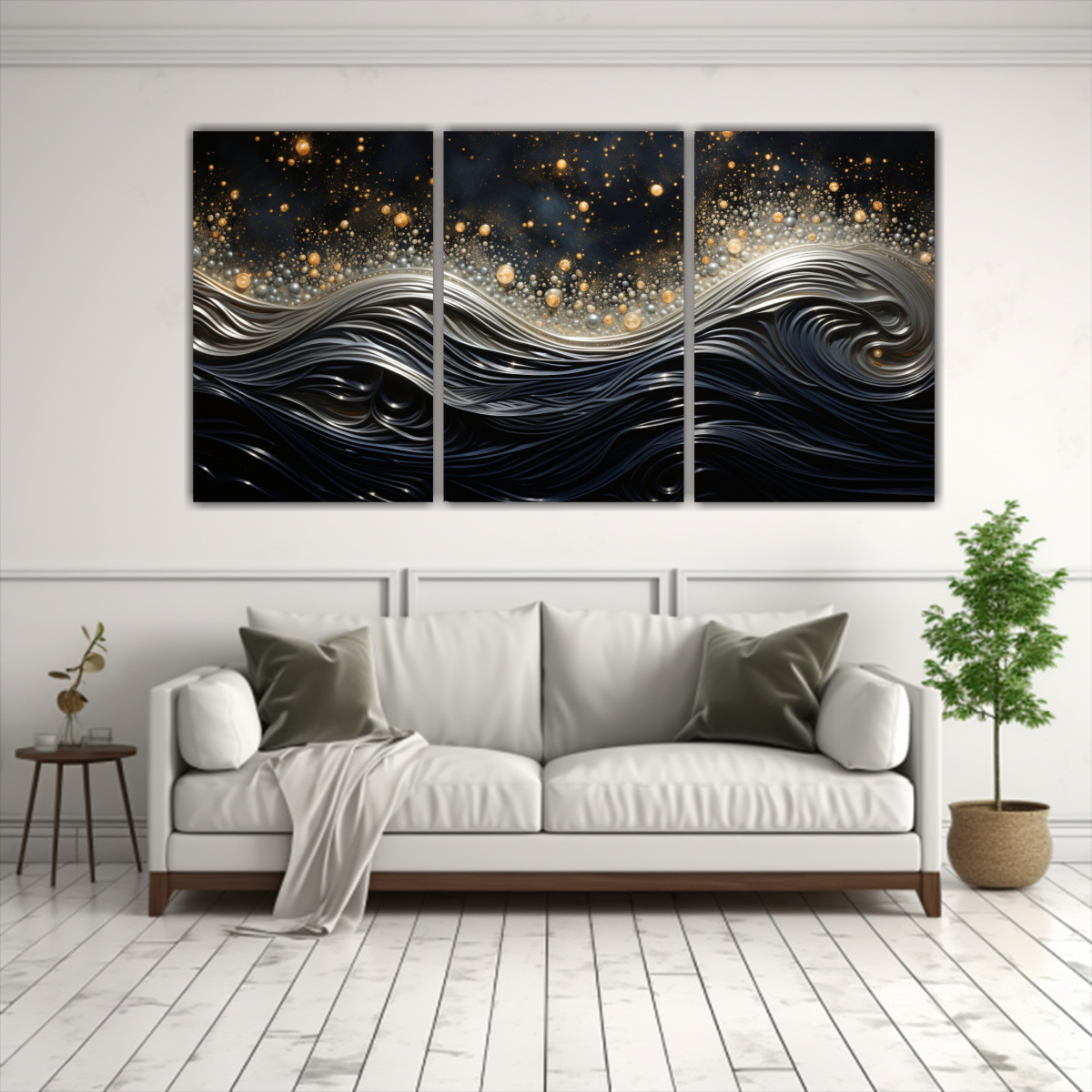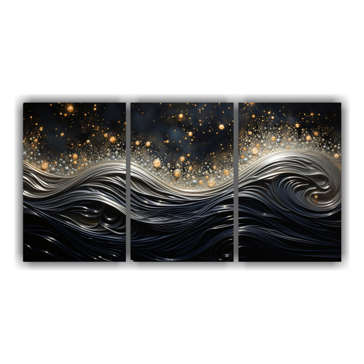 Encuentra en nuestra tienda online DecoCuadros los cuadros decorativos estilo puntillismo luminoso hechos con líquidos El set incluye 3 telas en bastidor con colores elegantes como el plateado, negro, dorado, azul marino grisaceo, gris y chocolate Con diseños exclusivos y alta calidad, ofrecemos los precios más económicos del mercado Además, disfruta de entregas rápidas y gratuitas en Santiago y envíos express a regiones