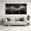 Este set de cuadros puntillismo luminoso es perfecto para decorar tu sala de estar o habitación principal Coloca los cuadros en una pared neutra o en una pared de color claro para resaltar el contraste de los tonos plateado, negro, dorado, azul marino grisaceo, gris y chocolate Combínalos con muebles en tonos neutros o colores oscuros para crear un ambiente elegante y sofisticado