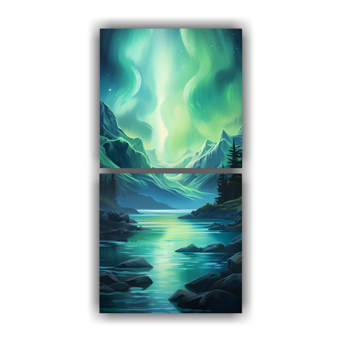 Pinturas Decorativas En Bastidor: Luminosos Verdes Y Profundos Azules Representando Una Abstracción Majestuosa