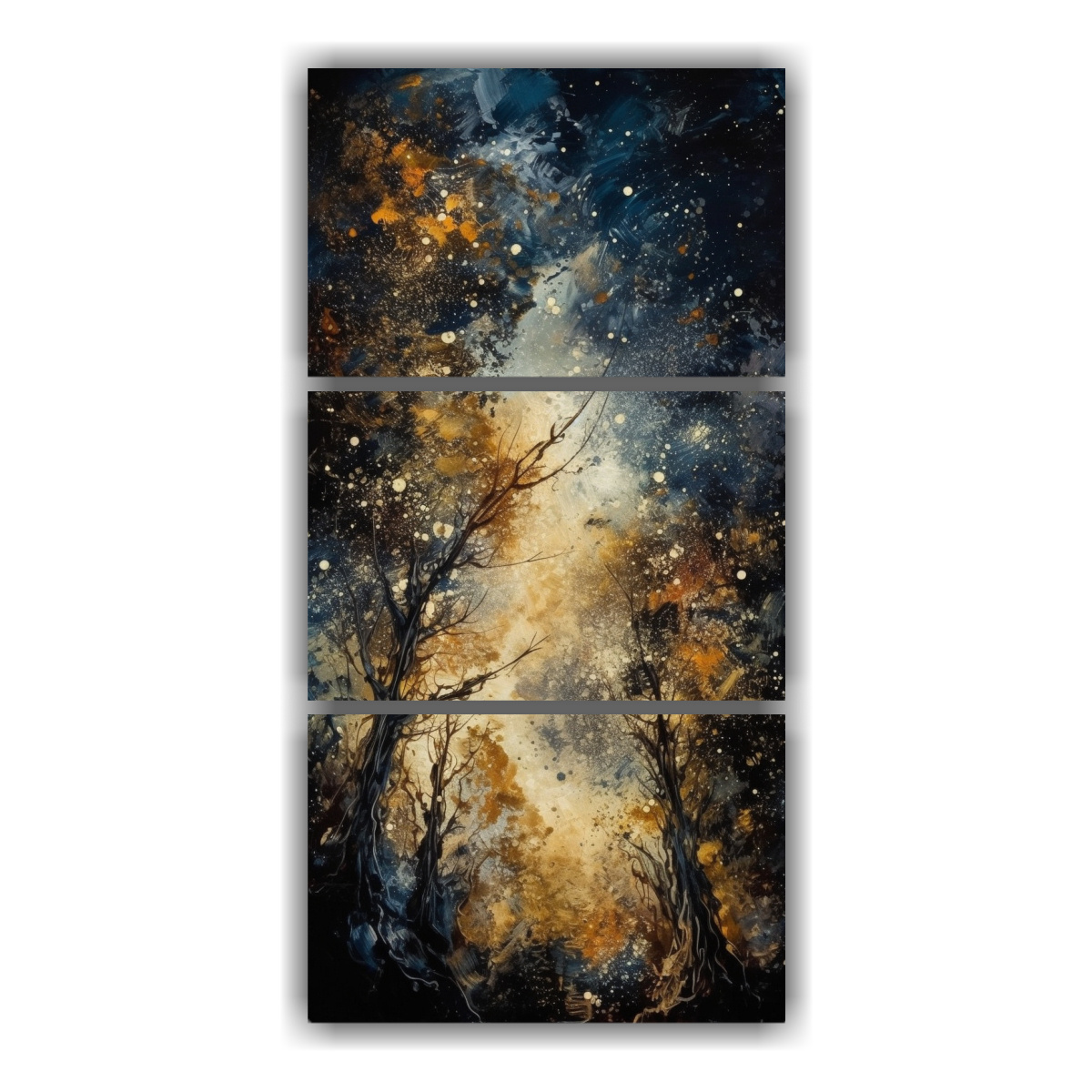 Pinturas Decorativas En Bastidor: Movimiento Impactante Con Escamas De Oro Y Plata En La Vía Láctea