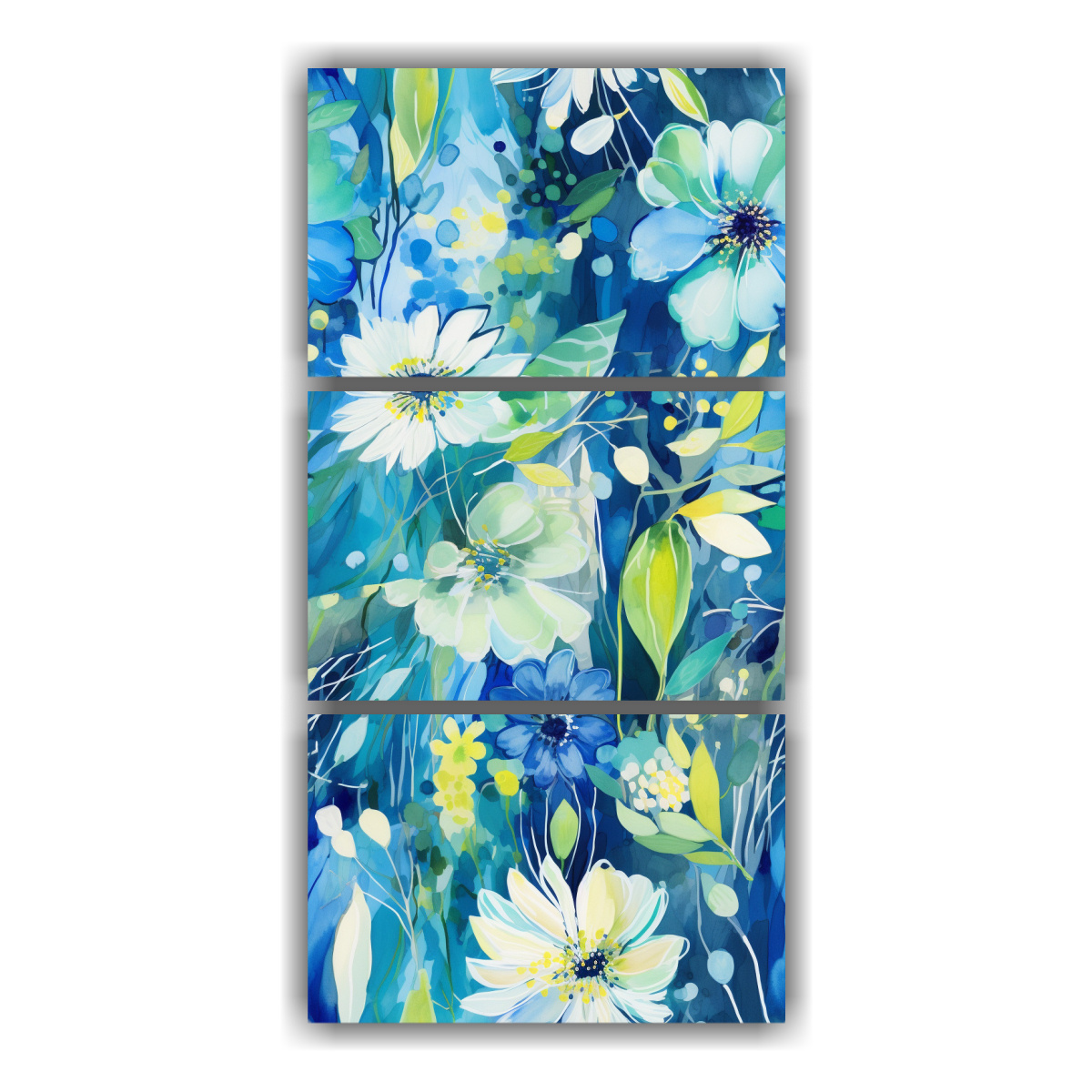 Pinturas Decorativas En Bastidor Set 3 Telas Conceptuales Lineales De Patrón Abstracto Con Colores Brillantes En Azules Oscuros Y