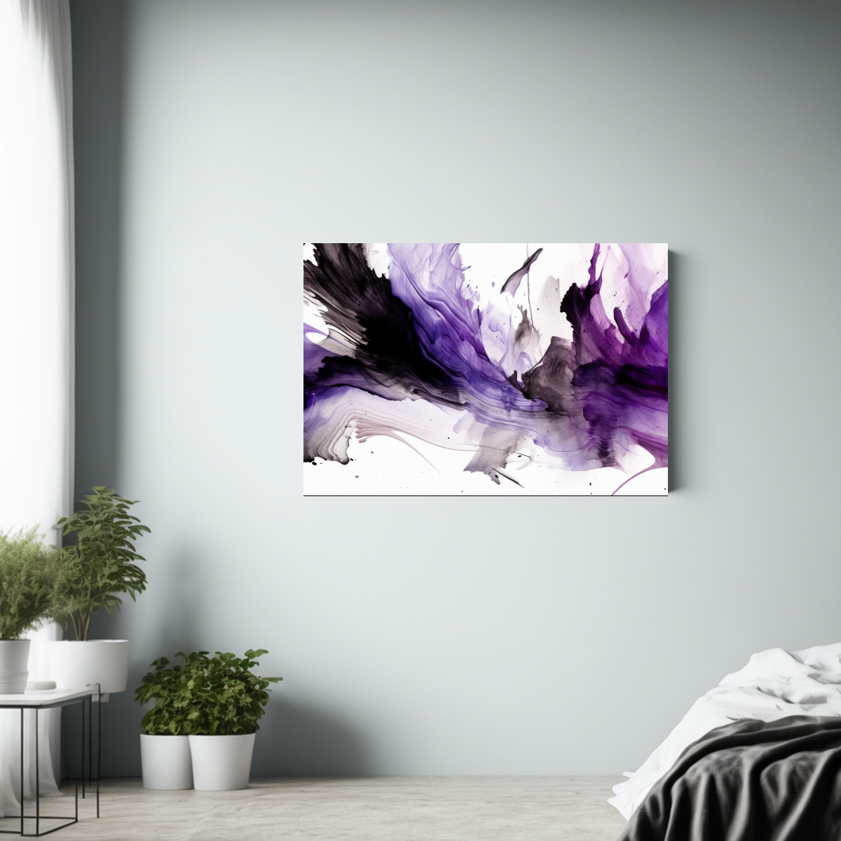 Este cuadro abstracto en blanco con pinceladas negras y moradas es perfecto para decorar tu sala de estar o dormitorio Colócalo sobre un mueble oscuro para resaltar sus colores y crear un contraste elegante en tu espacio