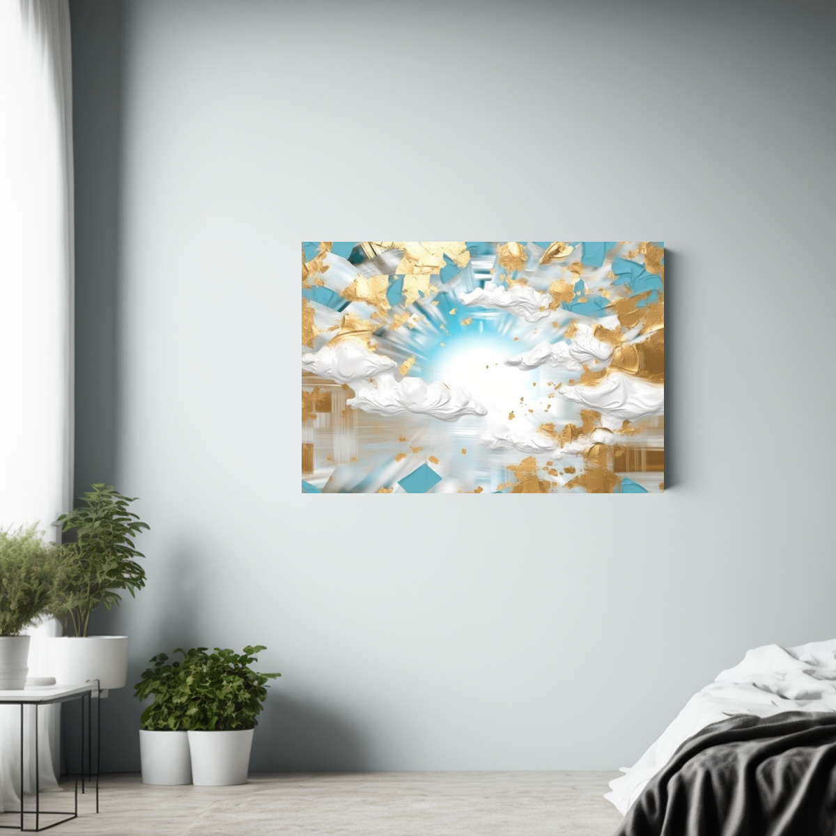 Pinturas Decorativas En Blanco Dorado Y Azul Cielo