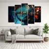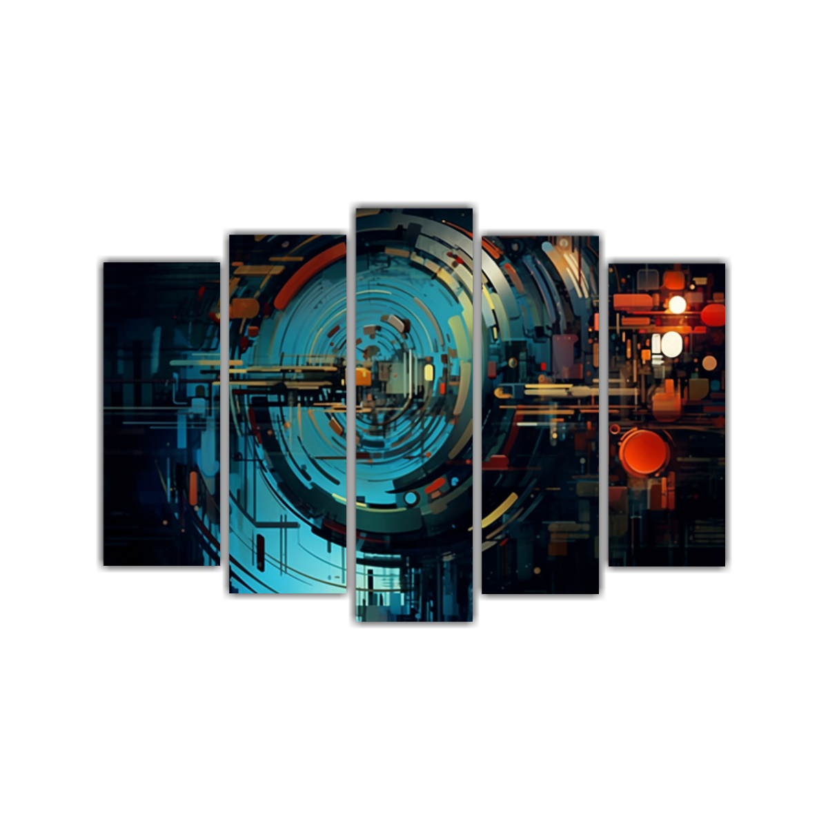 Pinturas Decorativas En Cinco Telas Horizontales: Armonía Cromática Abstracción Tecnológica