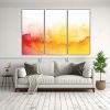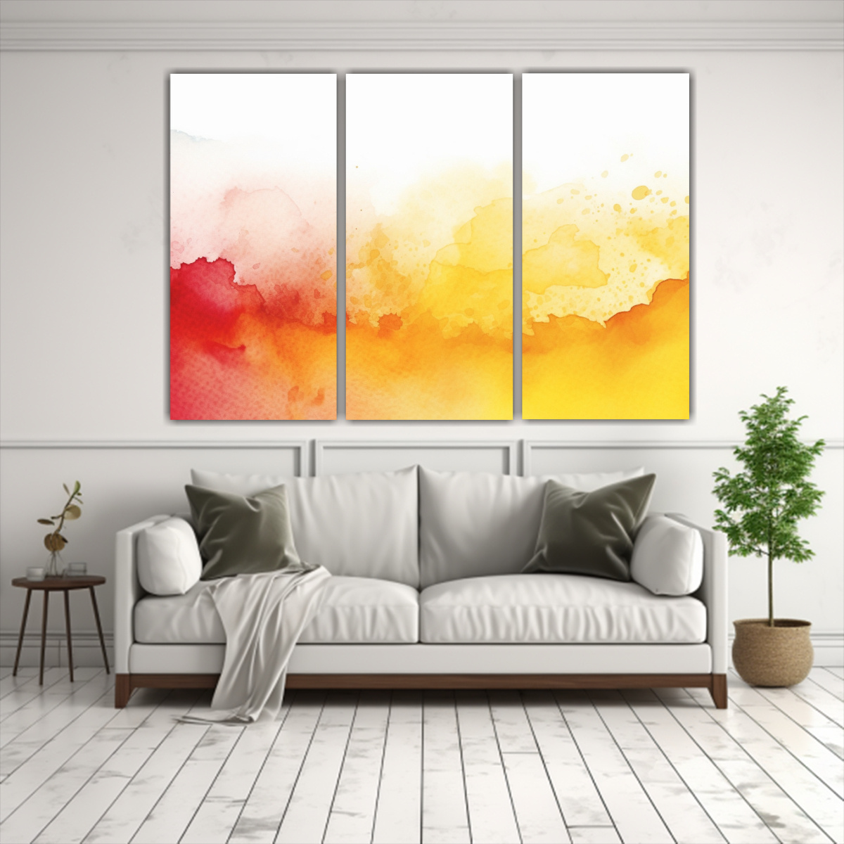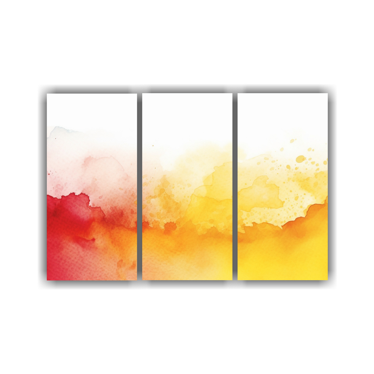 Set de 3 artes concepto impactante en tonos carmesí y dorado amarillo sobre fondo acuarela Decora tu hogar con diseños exclusivos y entrega rápida gratis en Santiago