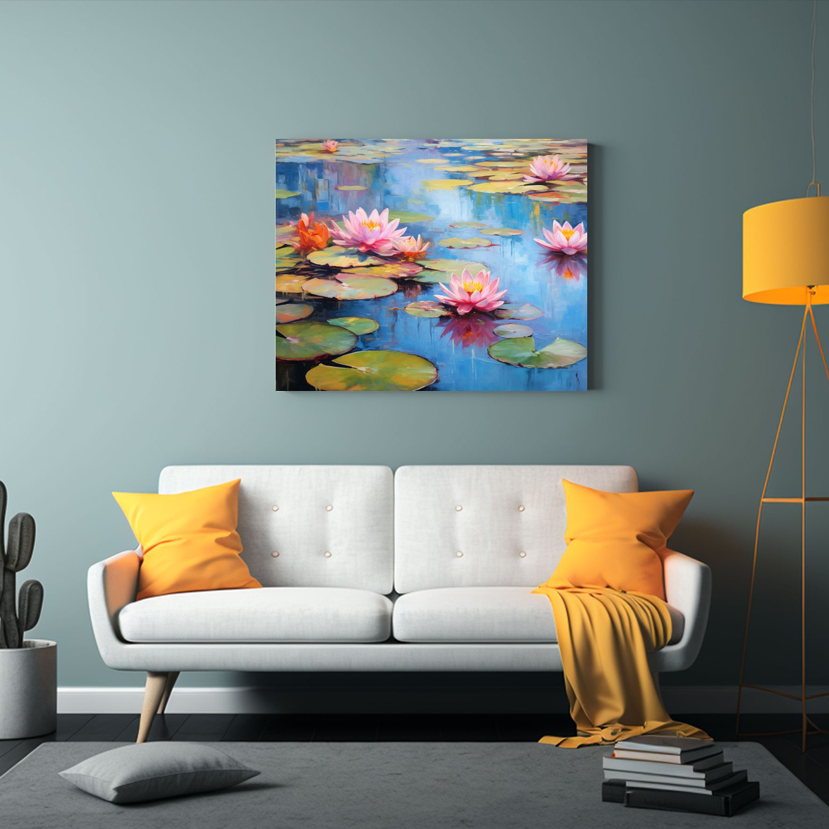 Este cuadro de nenufares en estilo fauvista sería perfecto para colocar sobre un sofá en la sala de estar, creando un punto focal vibrante Combínalo con cojines en tonos azules y verdes para una decoración armoniosa y llena de vida