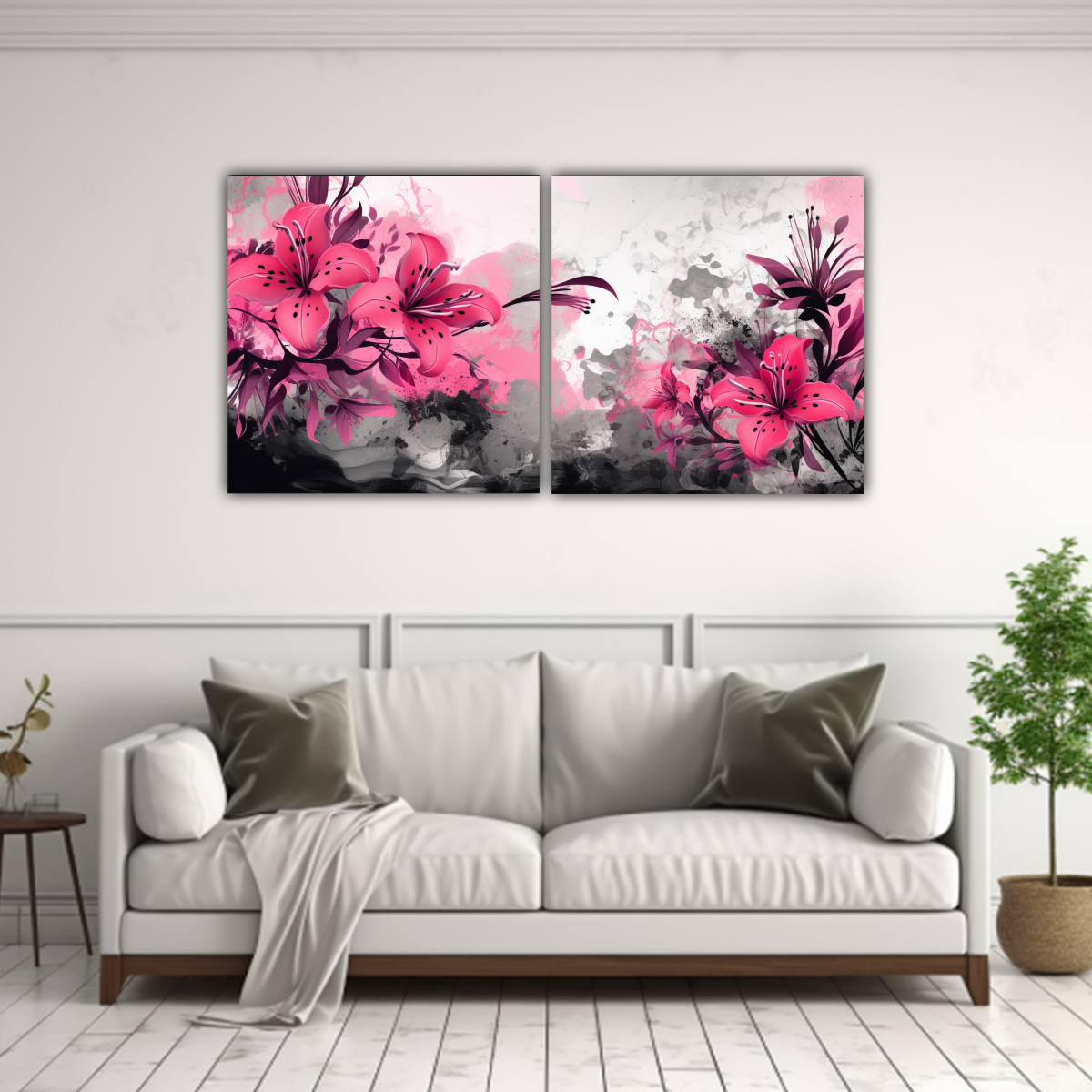 En DecoCuadros, ofrecemos la mejor calidad del mercado en cuadros decorativos impresos en tela de alta calidad con bastidores de madera Nuestro Set de 2 Telas en Bastidor con una llamativa atmósfera neonoir en estilo medio es perfecto para agregar un toque de elegancia y sofisticación a cualquier habitación Con una amplia gama de colores como lila, carmesí, beige, azul marino grisáceo, gris, coral, rosado claro y dorado, nuestros cuadros se adaptarán a cualquier estilo de decoración Además, ofrecemos entregas rápidas y gratuitas en Santiago, y envíos express a todas las regiones ¡No te pierdas la oportunidad de tener un diseño exclusivo en tus espacios!