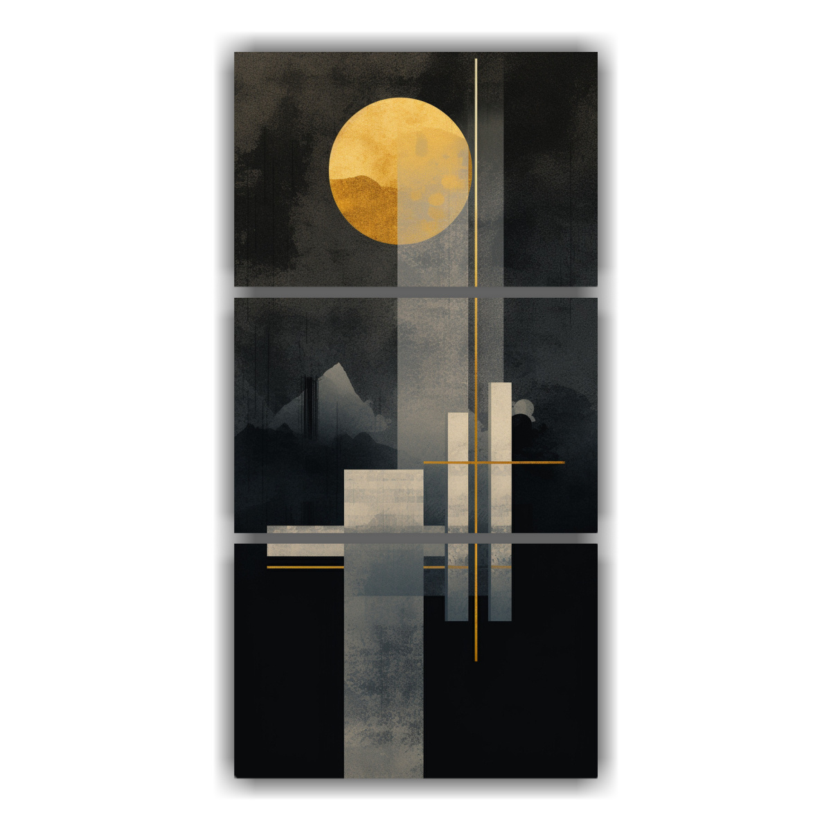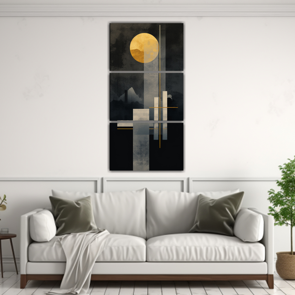 Pinturas Decorativas En Estilo Monocromático Tres Telas En Bastidor Moderno Vida Luna Dorada En Un Marco.